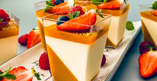 Vanilla Panna Cotta with strawberry jelly and berry confit topping